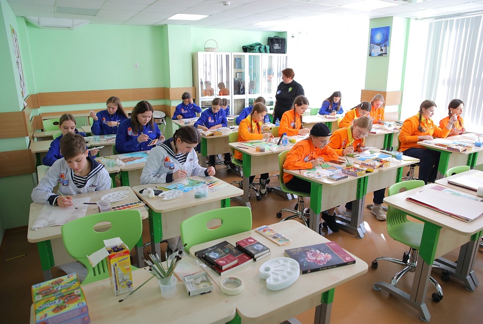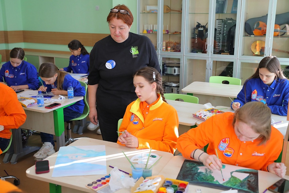 Встреча началась с рассказа о проекте «Юный благотворитель». Дети услышали живые истории о том, как обычные рисунки их сверстников превратились в мерч, были проданы и помогли реальным детям с конкретными именами и судьбами. Это вдохновило артековцев на создание собственных шедевров. Юные художники размышляли, какие образы могут вызвать у зрителя улыбку, сочувствие или теплые воспоминания, и переносили свои идеи в эскизы работ по теме «Мир, который я дарю».